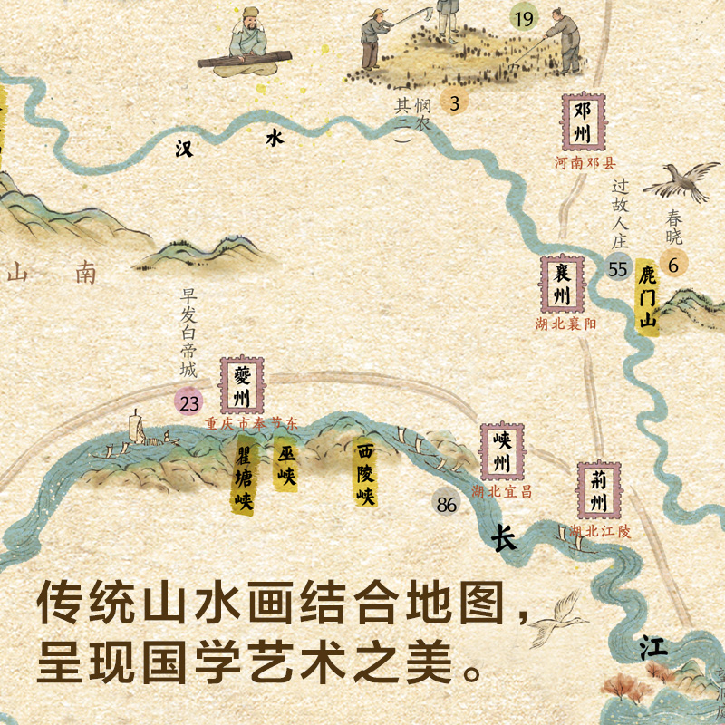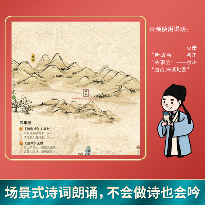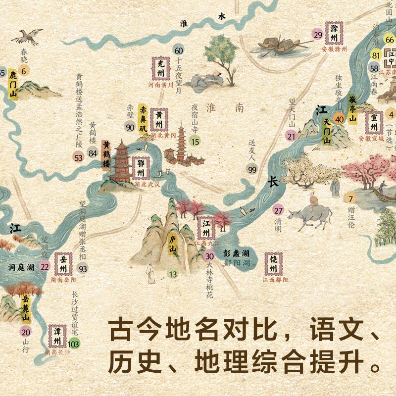饰北斗挂画大尺寸168首中国传统古诗词地理百科知识小学生专用全景中国国家地理 唐诗宋词地图儿童房屋室内墙面装 附音频 地图上