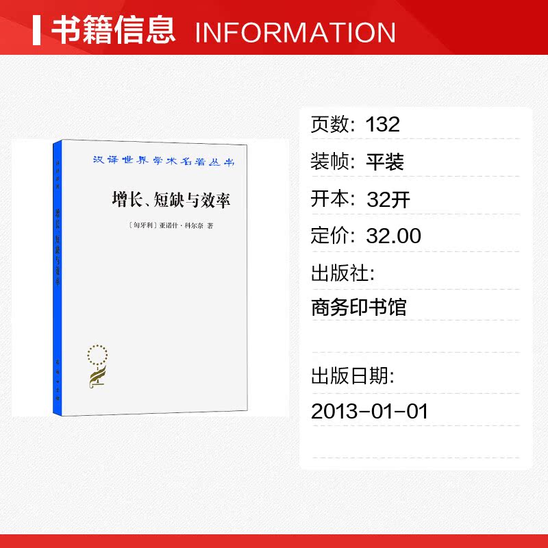 新华书店正版 商务印书馆 亚诺什·科尔奈 译 经济理论经管 潘英丽 匈 著 图书籍 增长 励志 短缺与效率