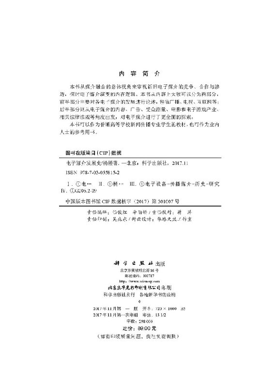 大中专 大中专文科社科综合 社 杨嫚 9787030558152 图书籍科学出版 著 新华书店正版 电子媒介发展史 大学教材
