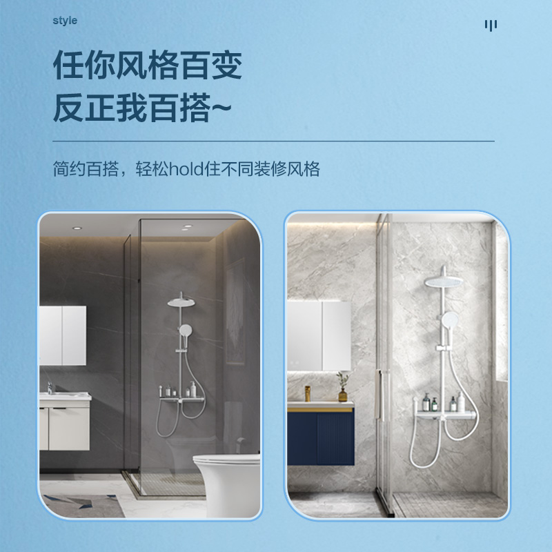 浪鲸奶油白色大置物台淋浴花洒套装 四功能带喷枪016