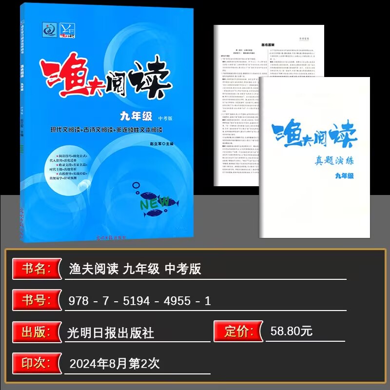 2025渔夫阅读九年级中考版 同步教材指导用书课外现代文阅读理解技巧基础过关练习册真题演练习题 上下册语文初中生初三9年级单元