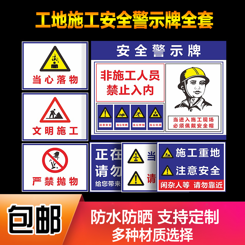 工地施工安全标识牌警示牌装 修工地标识配电房注意安全车间仓库警示标志戴安全帽有电危险当心触电提示牌贴纸