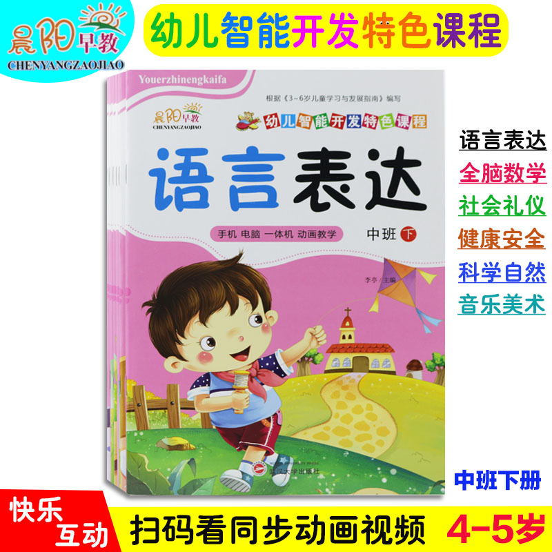 晨阳新蒙氏幼儿潜能开发特色课程4 化智能课数学语言音乐游戏健康礼仪安全教育书籍 5岁中班上下册幼儿园五大领域教材学前早教多元