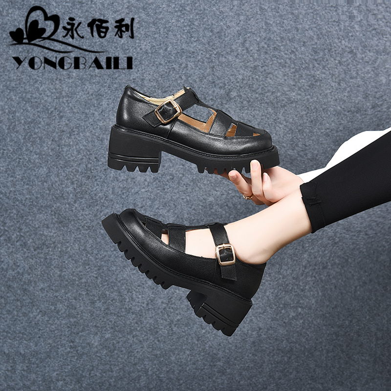 松糕厚底春夏单鞋 英伦风复古罗马凉鞋 女2025新款 真皮玛丽珍小皮鞋