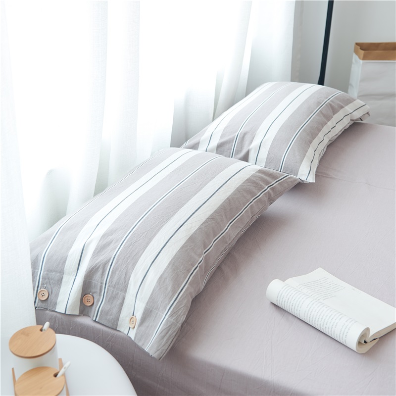 明超 全棉色织水洗棉四件套简约条格纯棉床单被套1.5m 特价