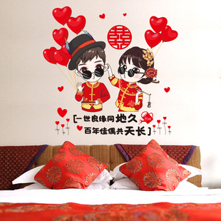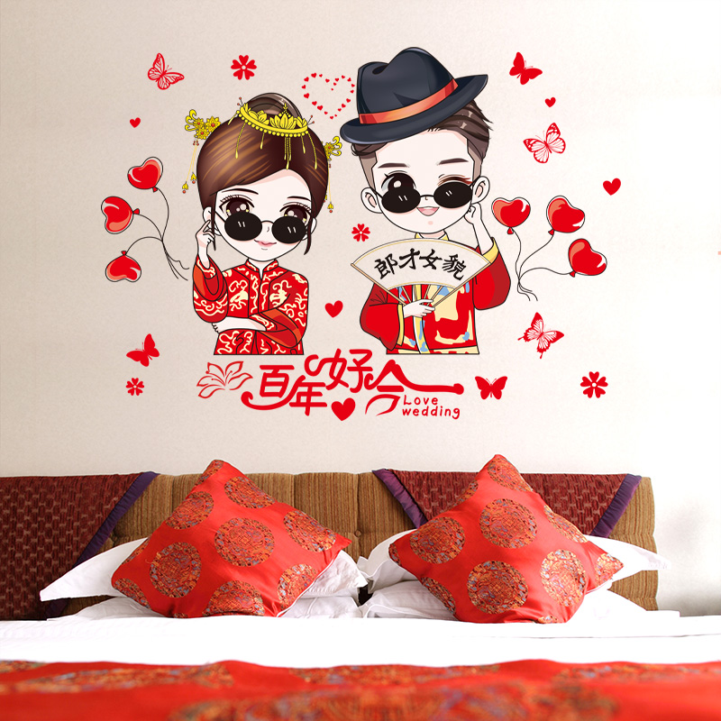 结婚房间装 饰喜庆自粘墙贴画婚房卧室床头背景墙布置贴纸墙上壁纸