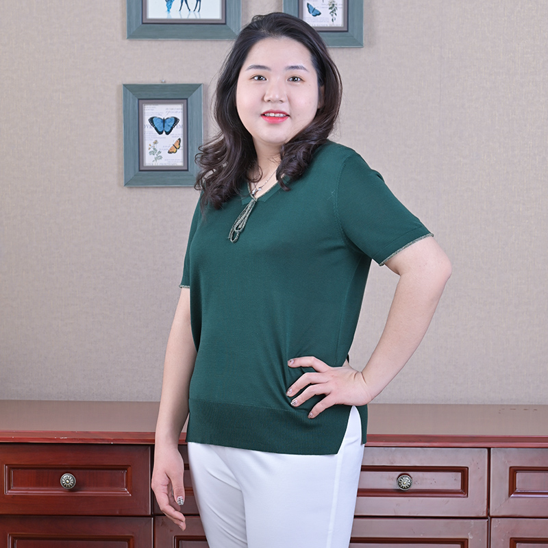女装 舒适短袖 秋夏季 针织衫 T恤V领上衣潮419213110 新品 胖太太大码