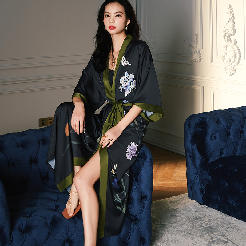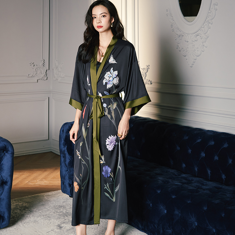 和服2024年新款 日式 睡袍 冰丝绸浴袍性感春秋睡裙薄长款 睡衣女夏季