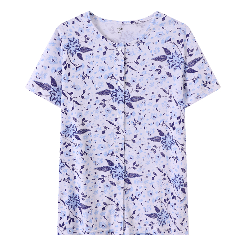 6070岁中老年人纯棉T恤妈妈装 A&B奶奶夏装 开衫 全棉衬衫 短袖