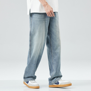 男宽松直筒阔腿vibe长裤 复古高街松紧腰牛仔裤 子 美式 Kuvine秋冬季