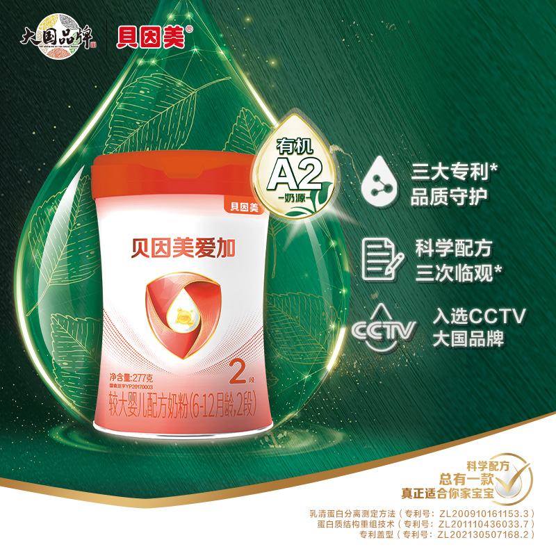 贝因美爱加有机A2奶源277g2段6 12月含OPN活性蛋白牛奶粉