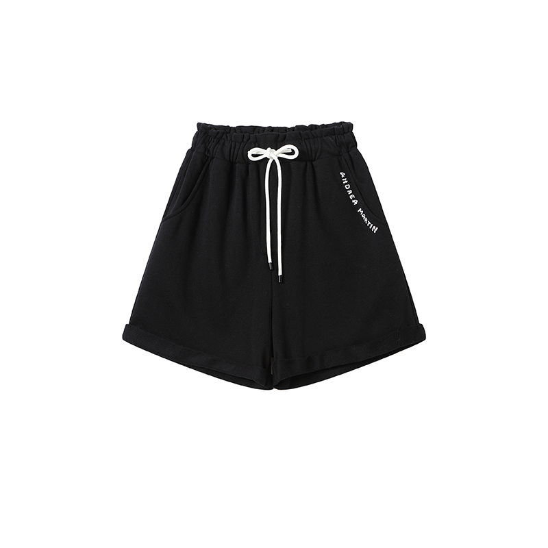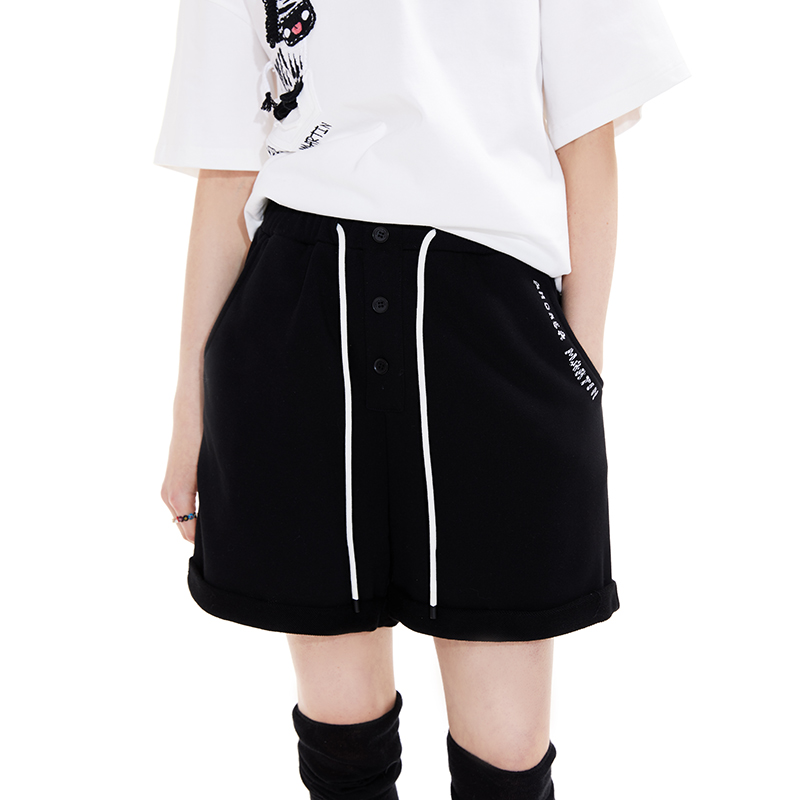 黑色logo印胶短裤 MARTIN新款 ANDREA 休闲运动裤 张含韵同款