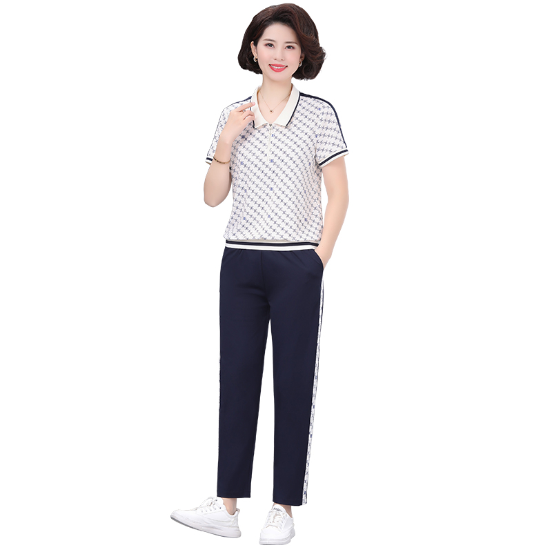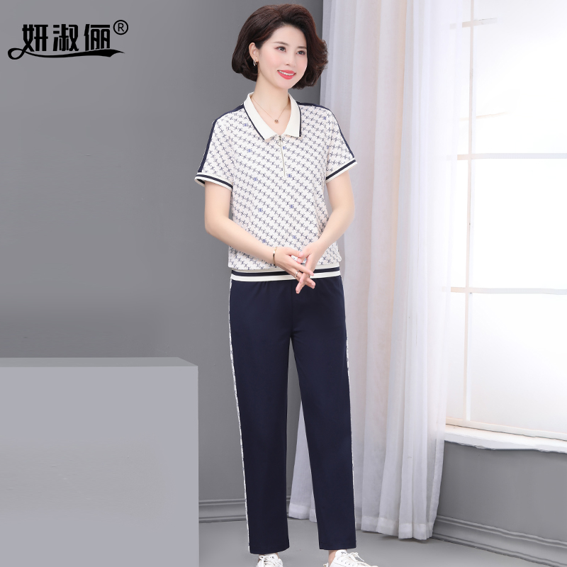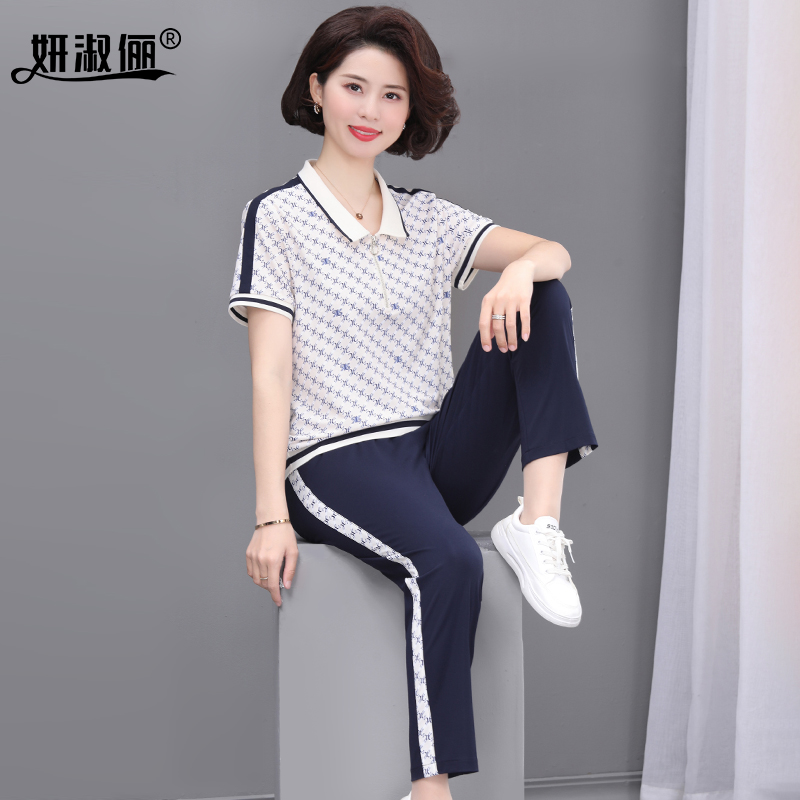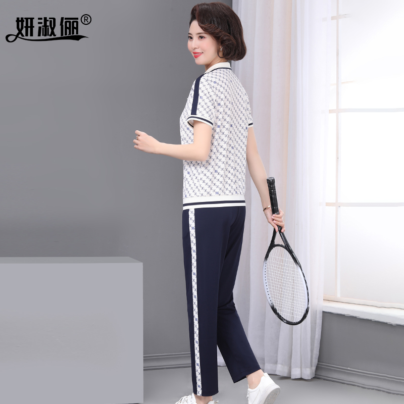 短袖 新款 polo领高档显瘦女士薄上衣 夏季 中年妈妈高贵气质运动套装