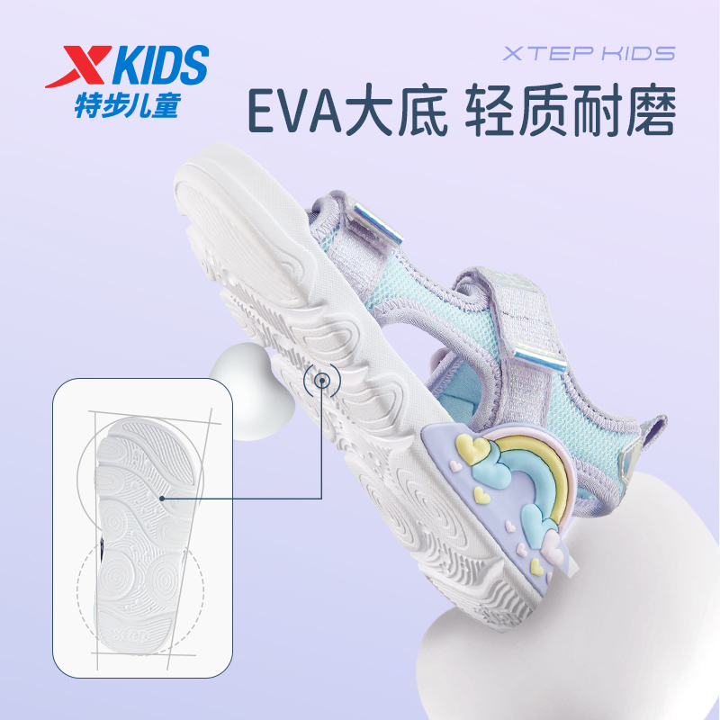 女童凉鞋 儿童鞋 夏款 露趾防滑彩虹夏季 子 小童宝宝运动凉鞋 特步童鞋