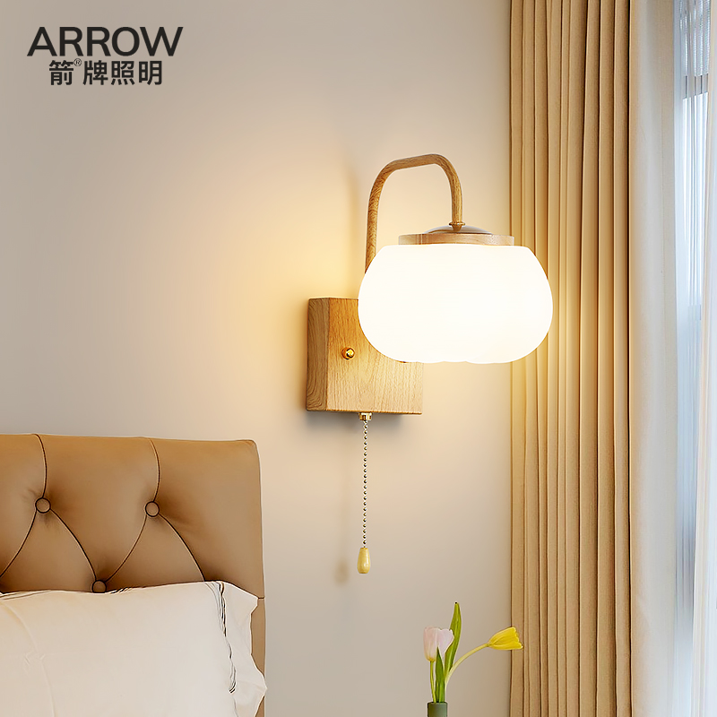 箭牌奶油风卧室壁灯护眼原木房间床头灯创意南瓜过道灯具简约现代