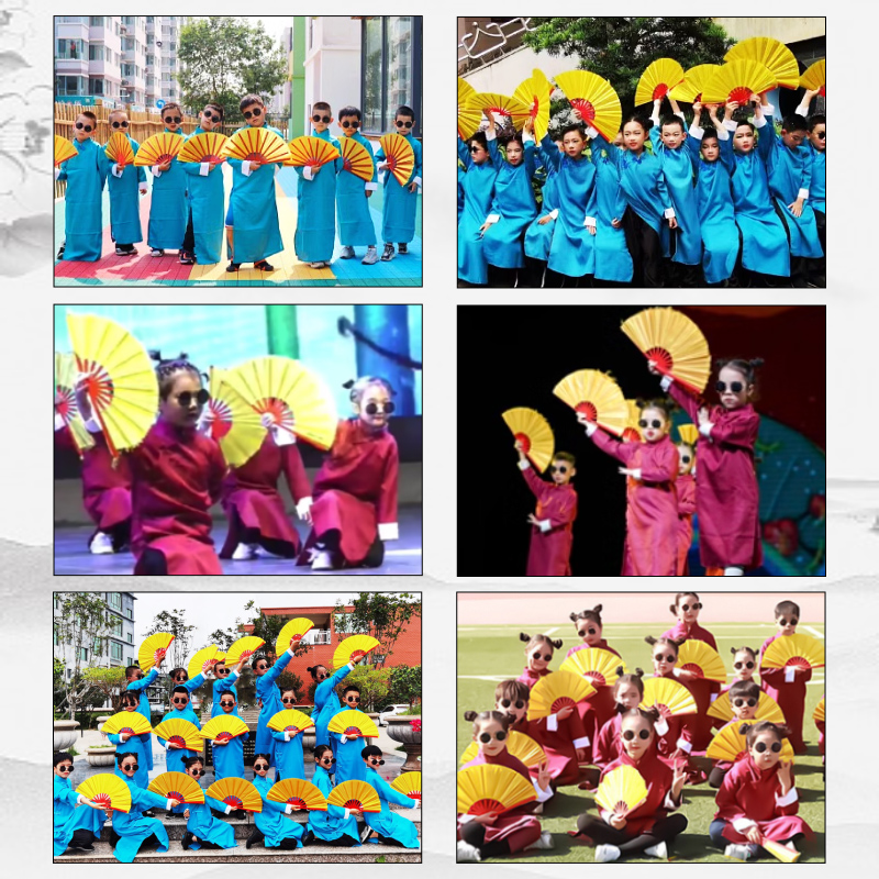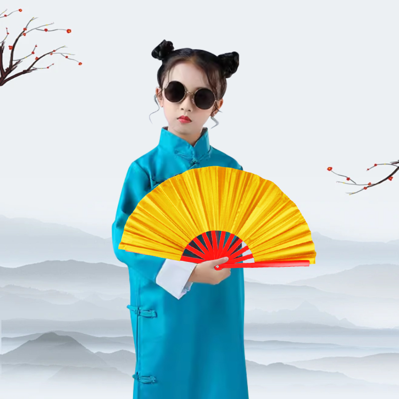 说书人折扇儿童太极功夫扇金色响扇中国风雪龙吟跳舞舞蹈表演扇子