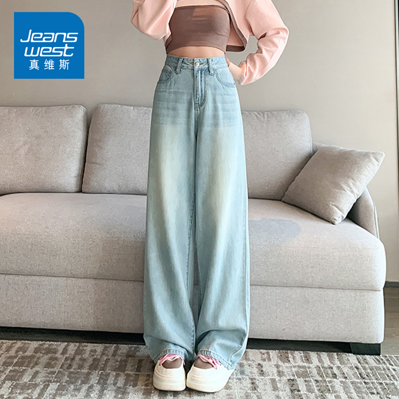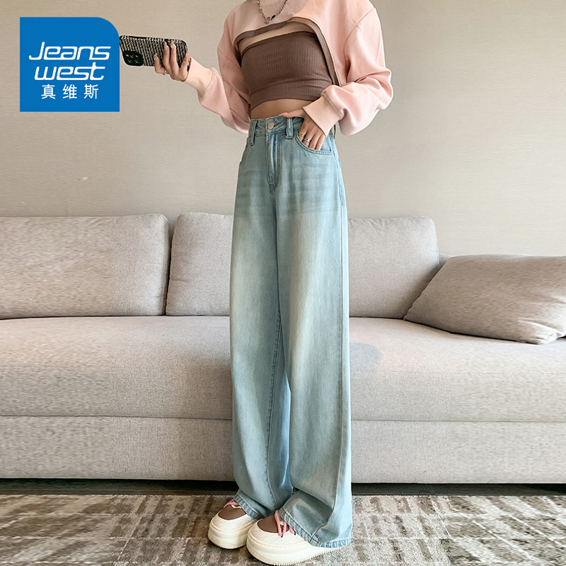 子秋冬款 KZ真维斯浅蓝色牛仔裤 裤 潮牌阔腿2025年新款 女高腰初秋季