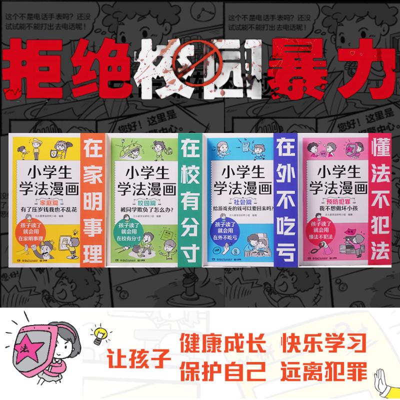 小学生学法漫画科普绘本故事书全套四册 在家明事理在校有分寸在外不吃亏懂法不犯法小学生法律启蒙书儿童自我保护安全教育绘本