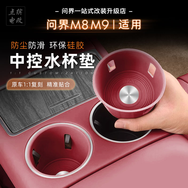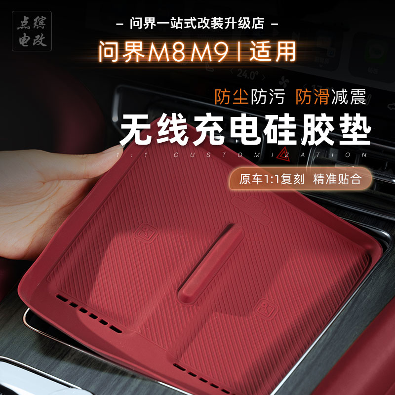 25款 无线充中控下硅胶垫冰箱扶手箱水杯垫 问界M8中控内饰硅胶套装