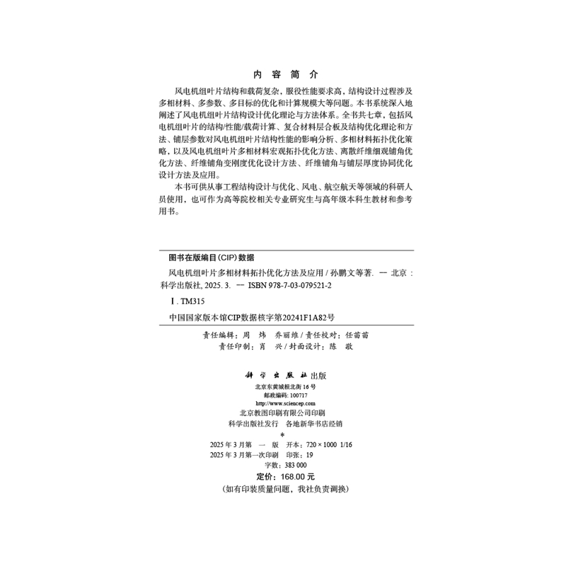 风电机组叶片多相材料拓扑优化方法及应用孙鹏文等电工技术 社凤凰新华书店旗舰店 家电维修科学出版