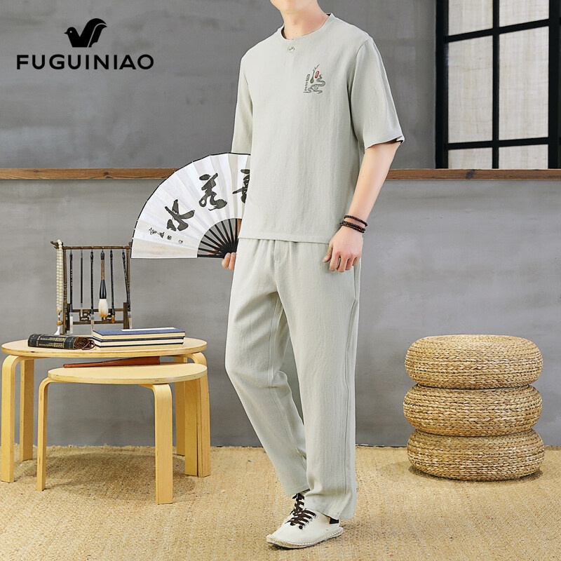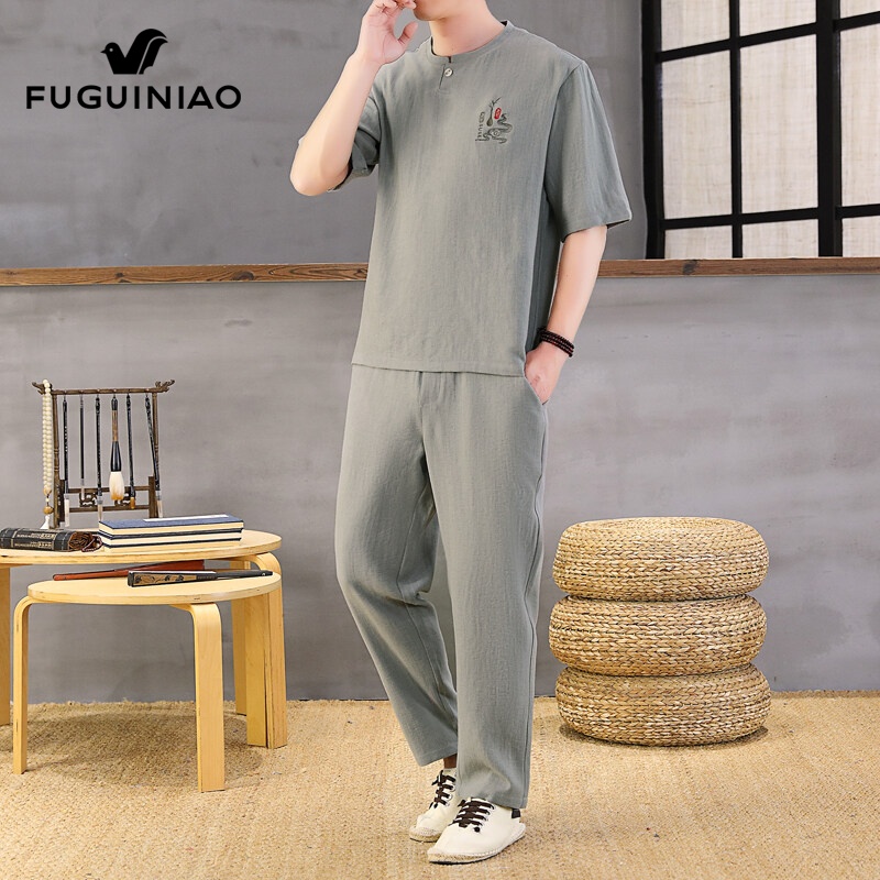 套装 新款 男士 夏季 潮流中国风t恤男两件套 休闲运动长裤 富贵鸟短袖