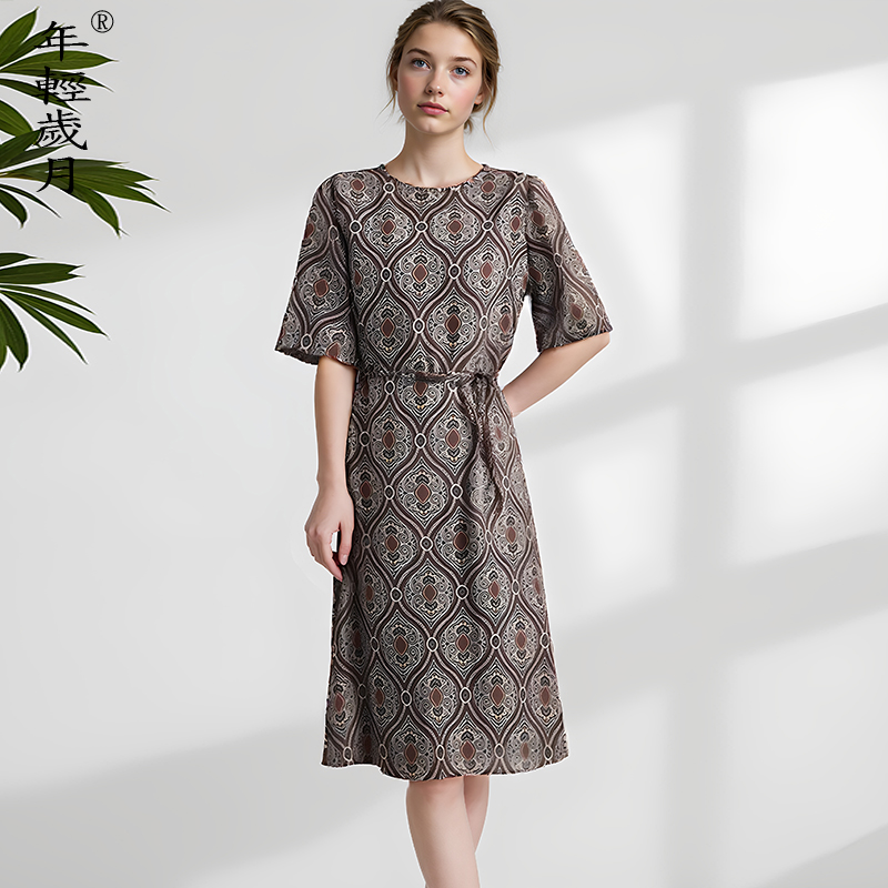 复古浪漫收腰不规则荷叶边雪纺连衣裙 新款 BANANA CICI2025年秋季