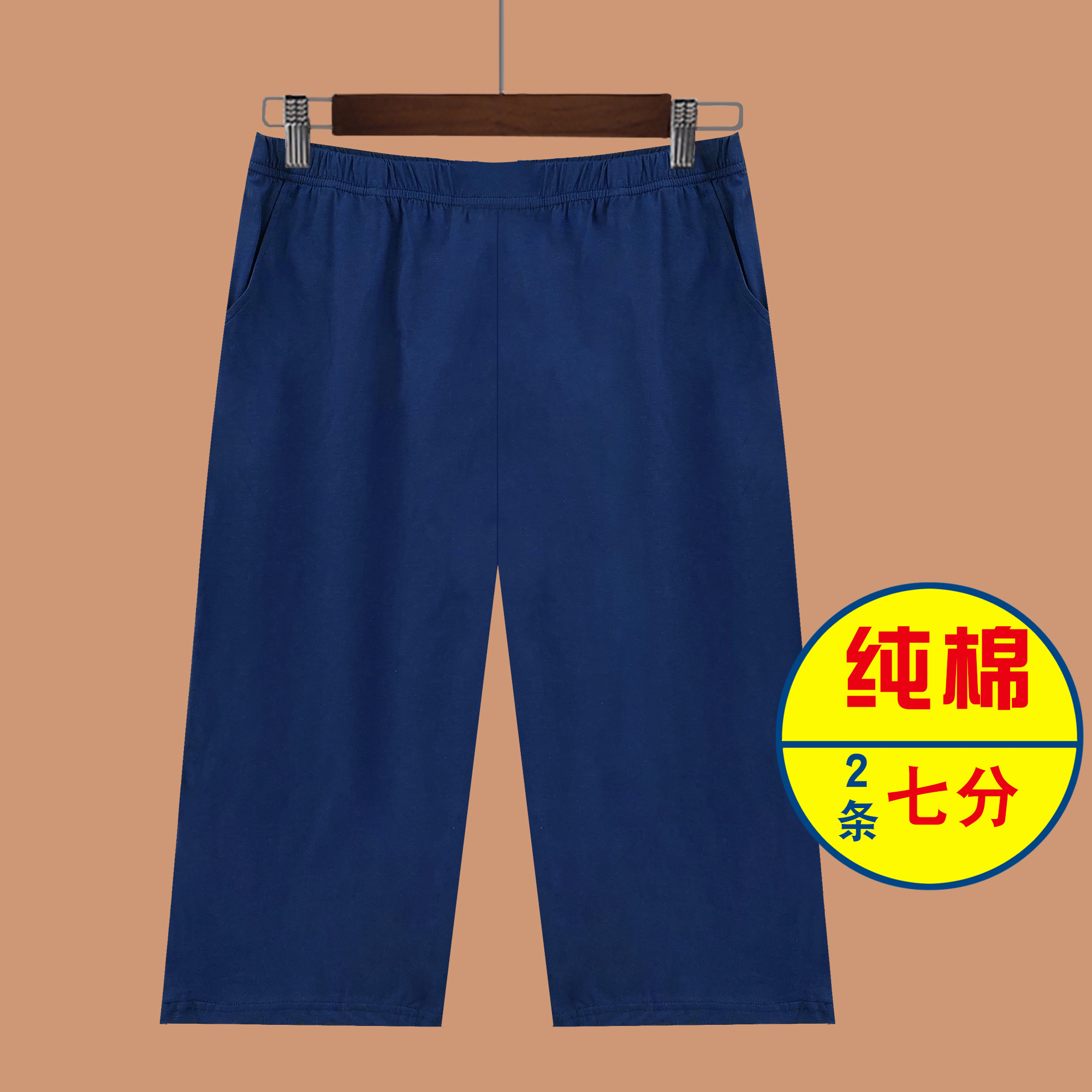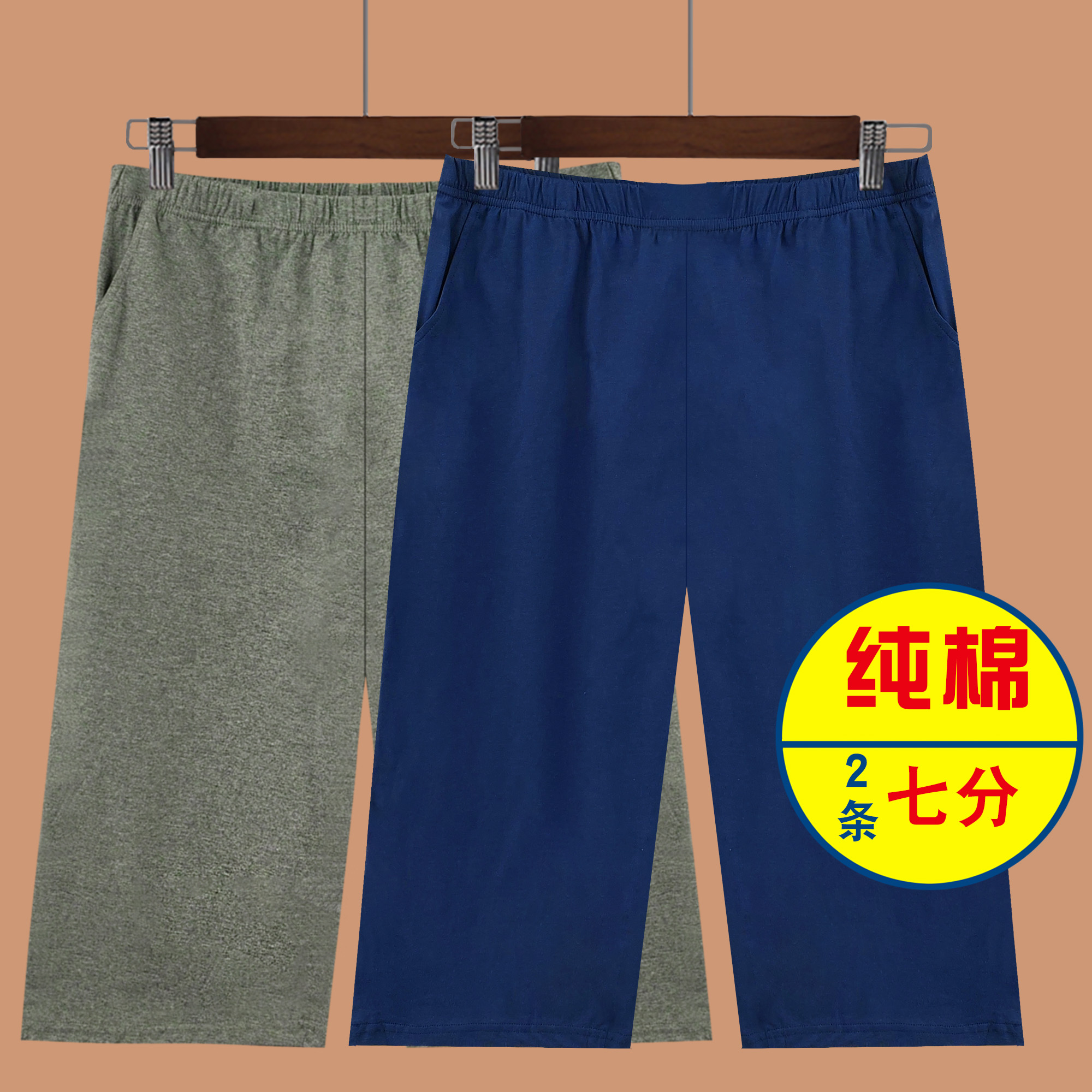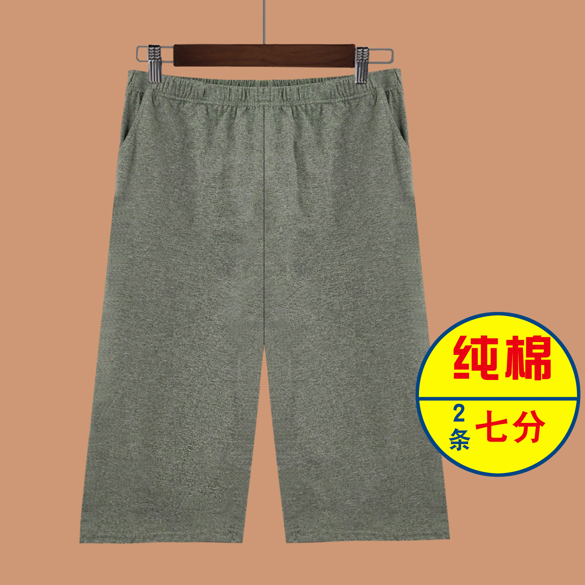 男士 休闲家居短裤 夏季 爸爸中老年人爷爷高腰睡裤 薄款 全纯棉七分裤