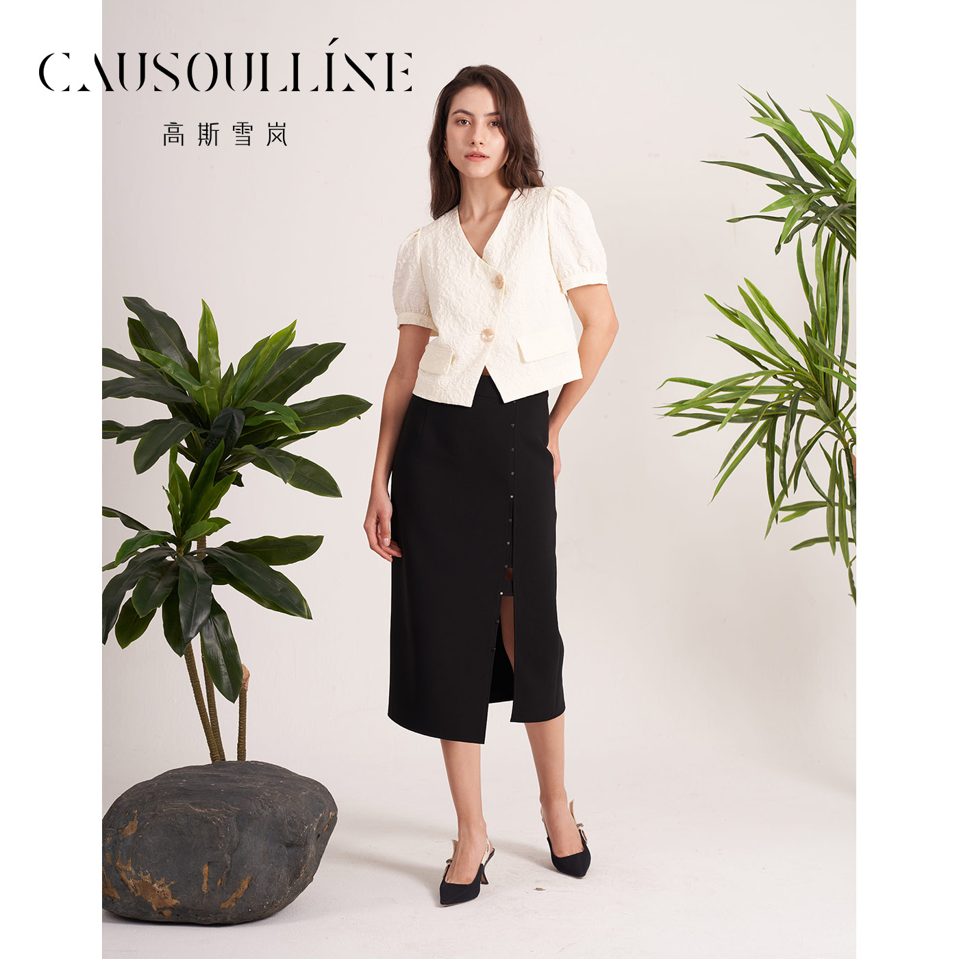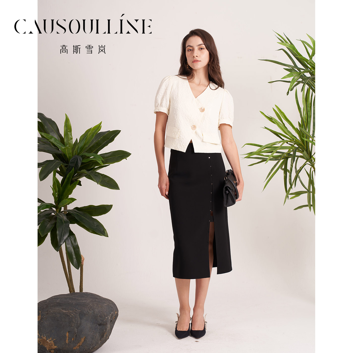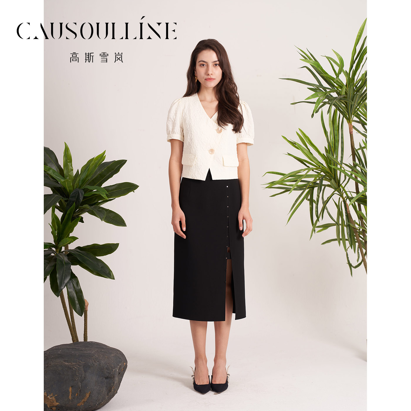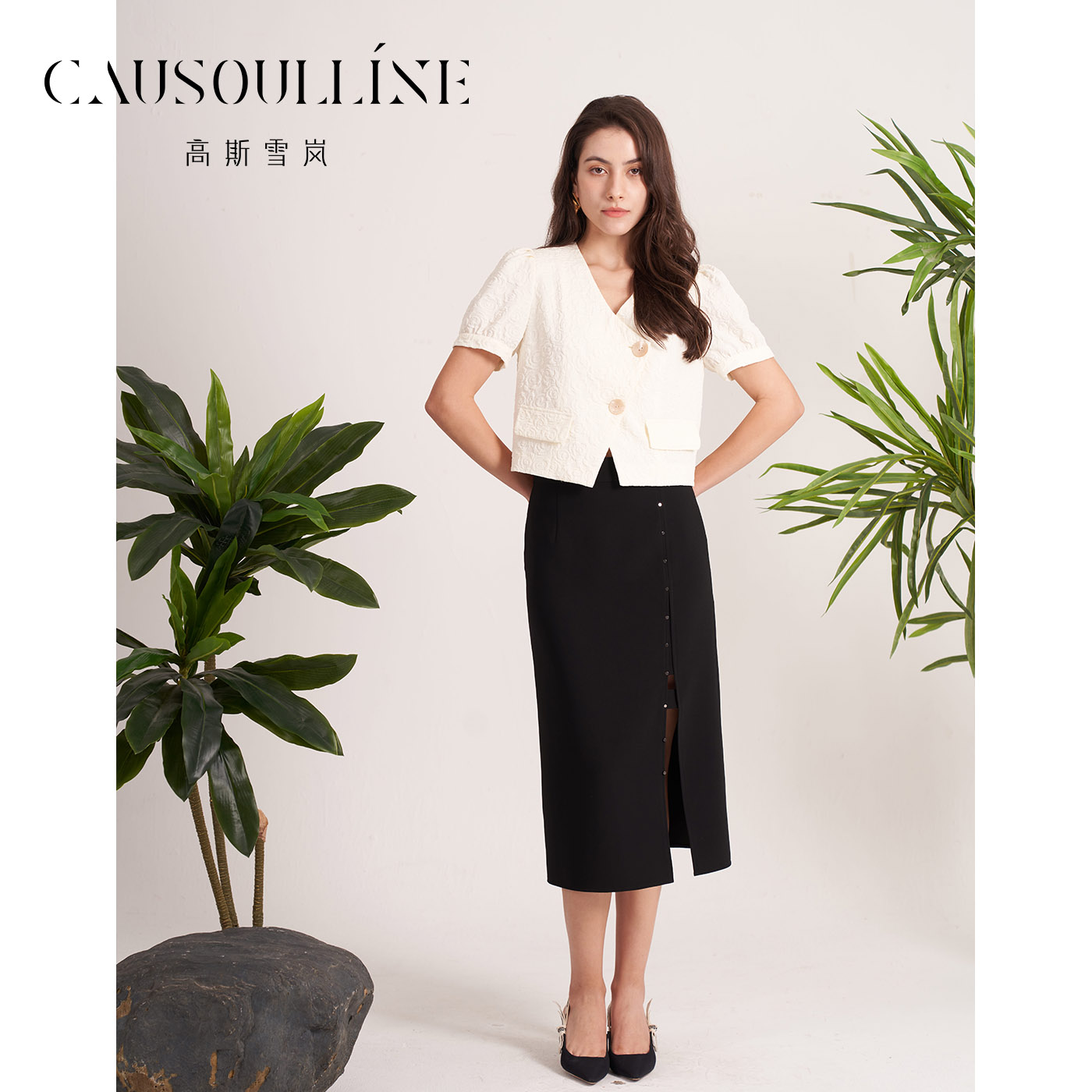 ELLE可露丽咖格鱼尾半身裙女2025夏季 不规则显瘦优雅a字长裙 新款