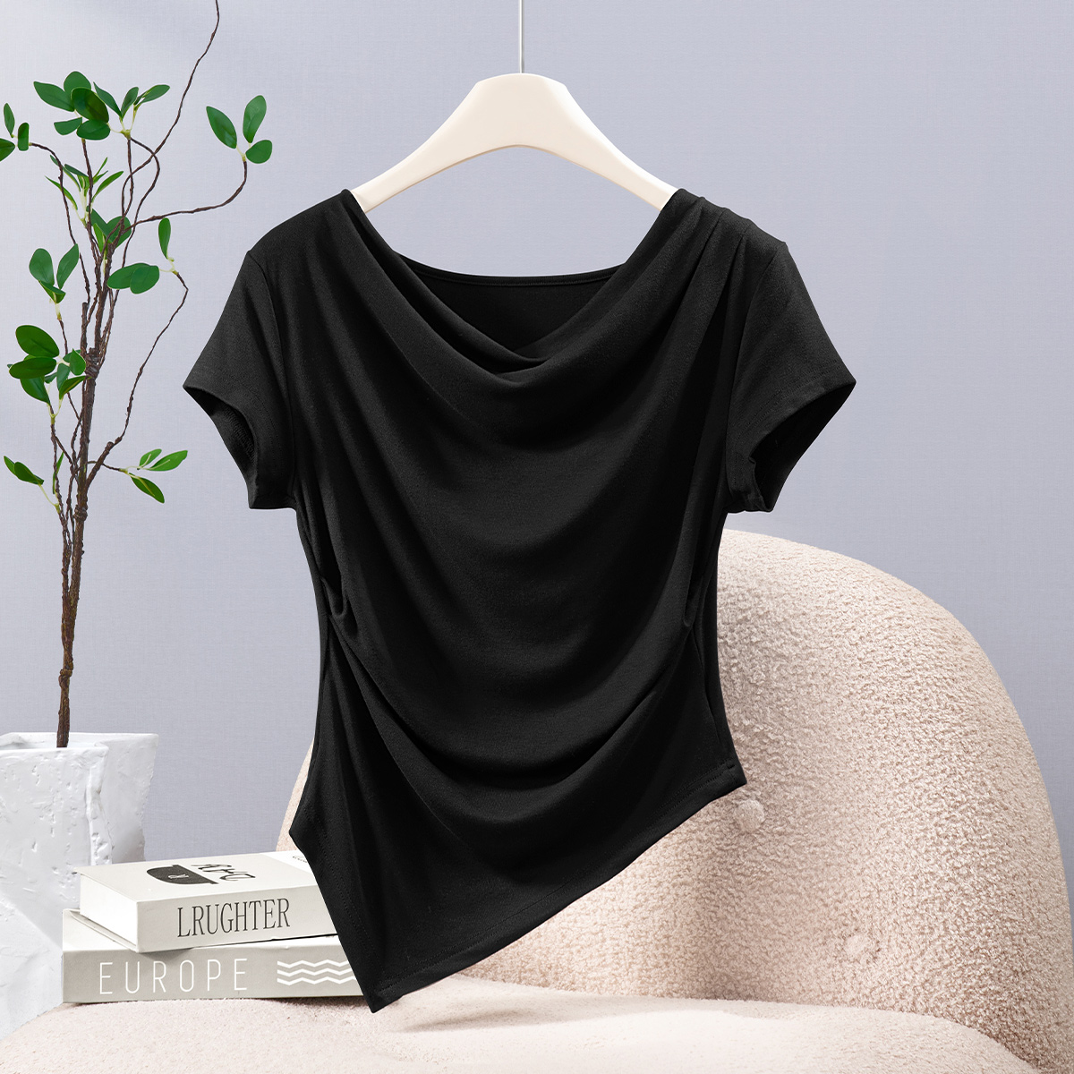 t恤女夏季 纯白色棉体恤打底衫 2025新款 修身 上衣短款 回力正肩短袖
