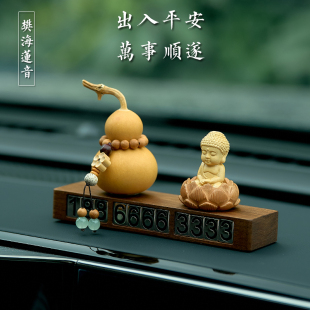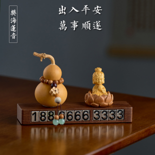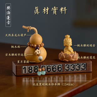 创意实木观音佛临时停车号码 牌挪车电话牌车上高端感男女士摆件