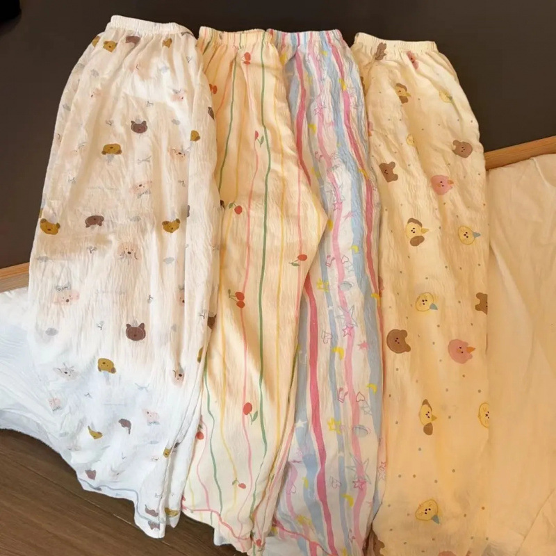 家居裤 睡裤 薄款 白色小狗长裤 可爱休闲宽松慵懒高腰直筒宽松 女夏季