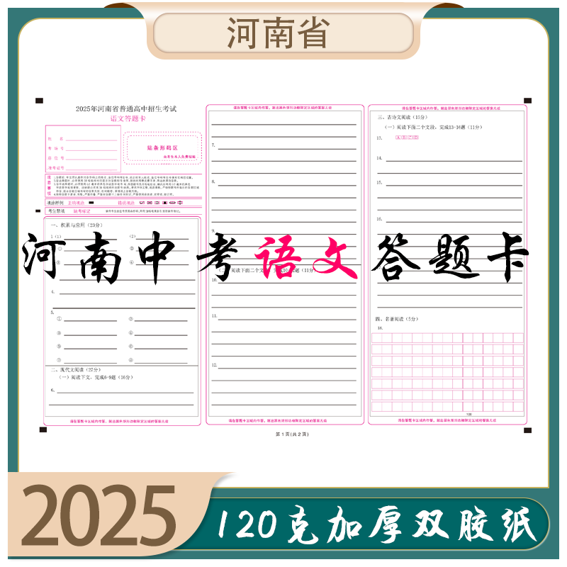 2025年河南省初中学业水平考试语数英物化生政史地全套模拟考试答题卡专用练习 各类答题卡 媲美考支持定制