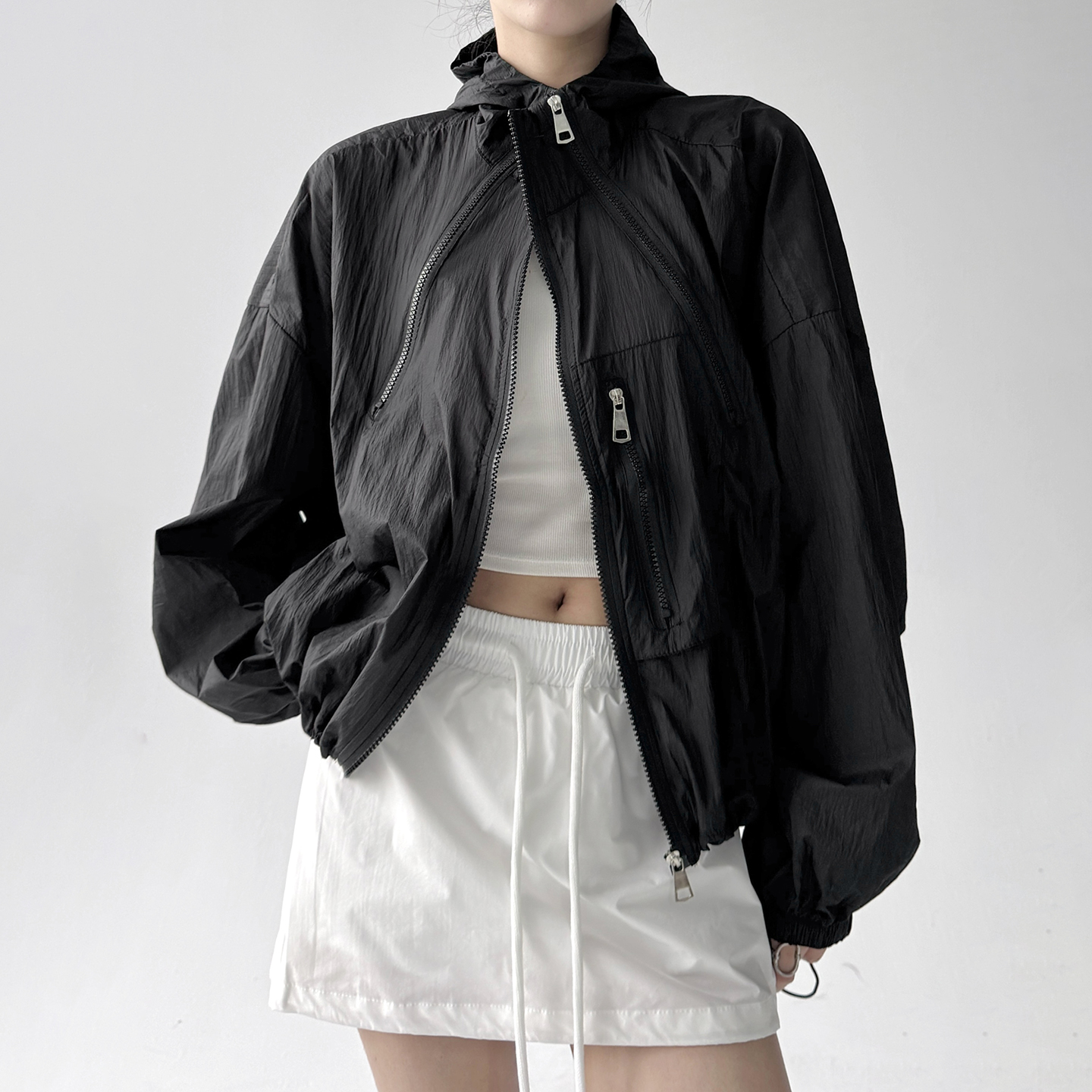 复连帽冲锋衣外套女宽松显瘦工装 防晒衣美式 上衣 超火新款 2025夏季