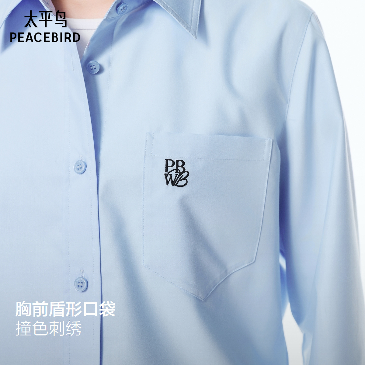 新款 太平鸟 25秋季 衬衫 女士合体翻领通勤衬衣 莫代尔顺滑蓝色长袖