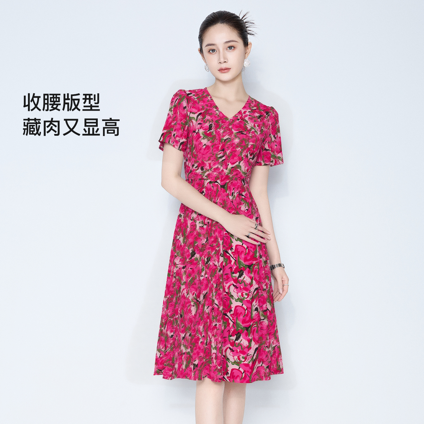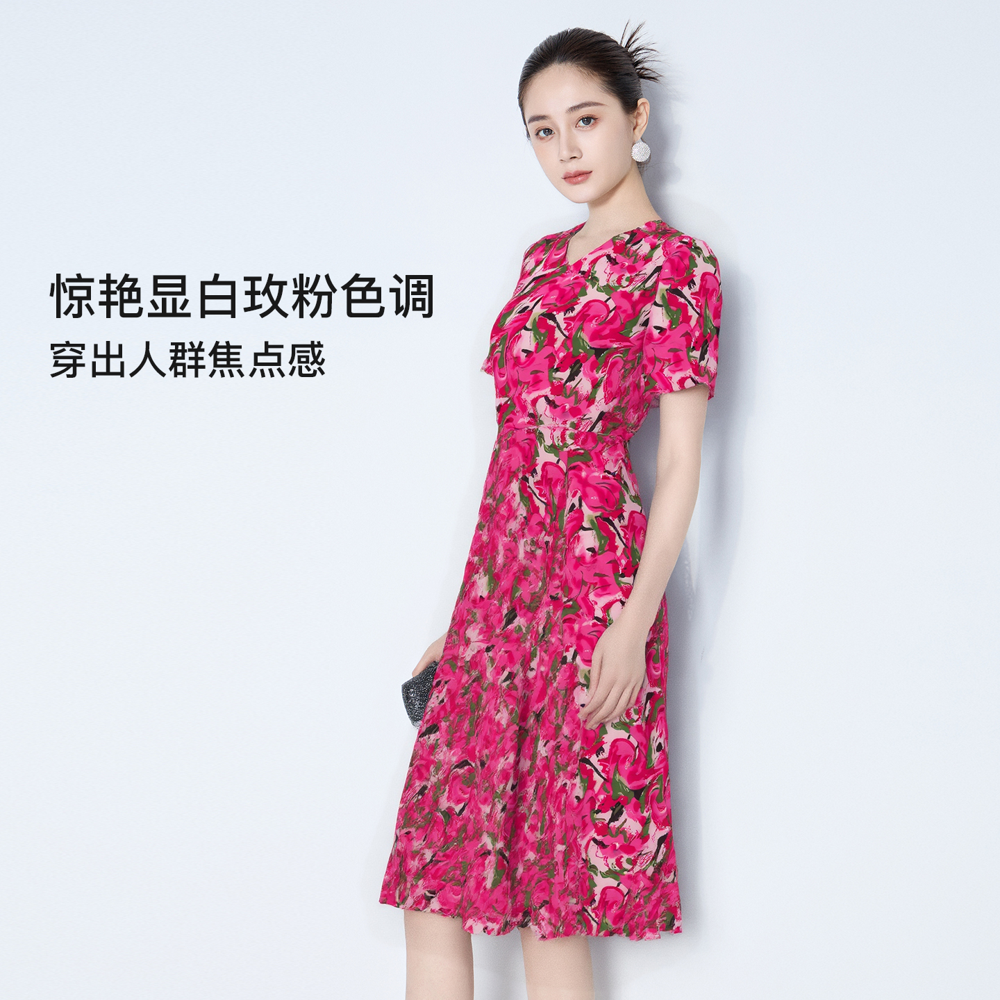 端庄国风旗袍裙 优雅粉色波点立领连衣裙女25年夏季 XZY 微胖新中式