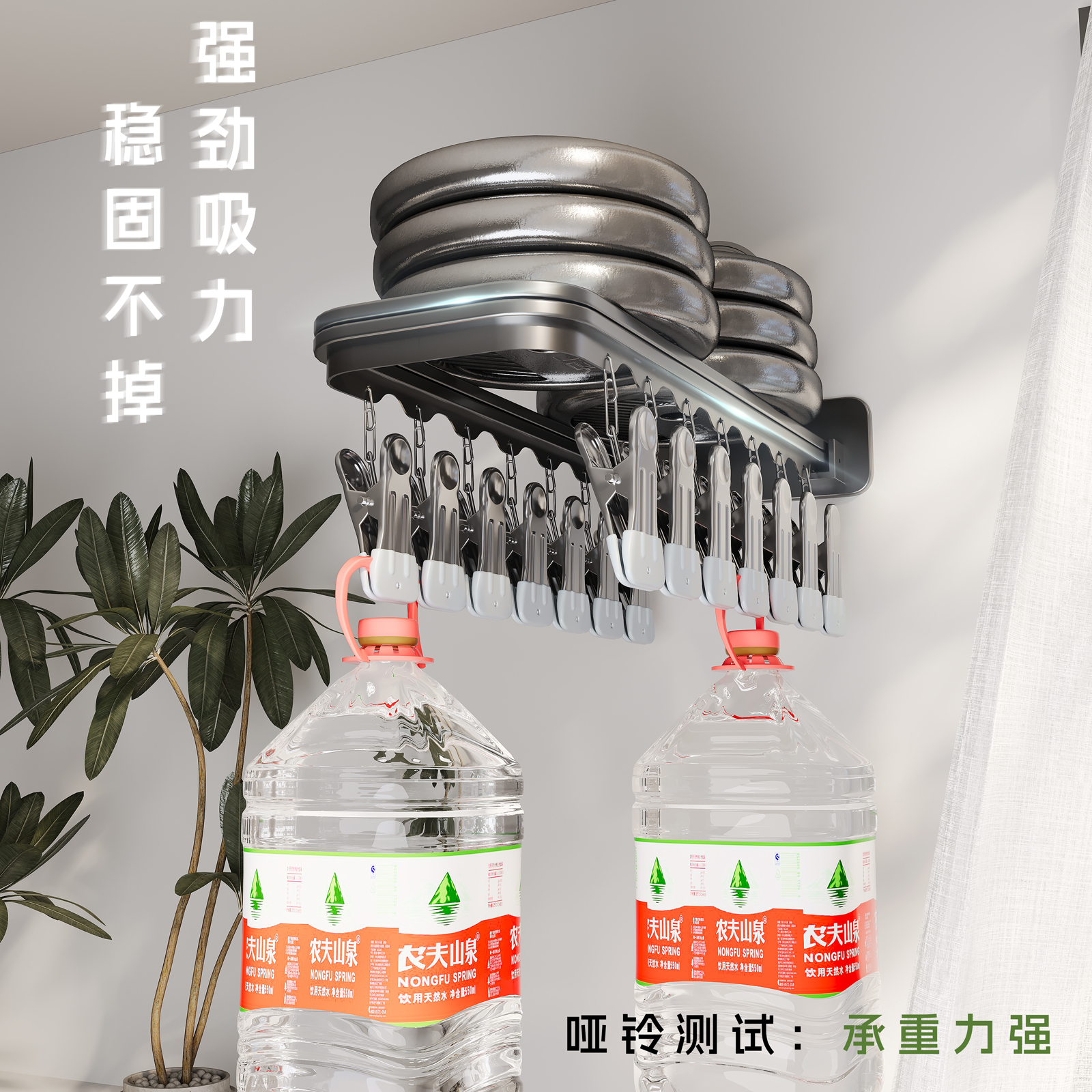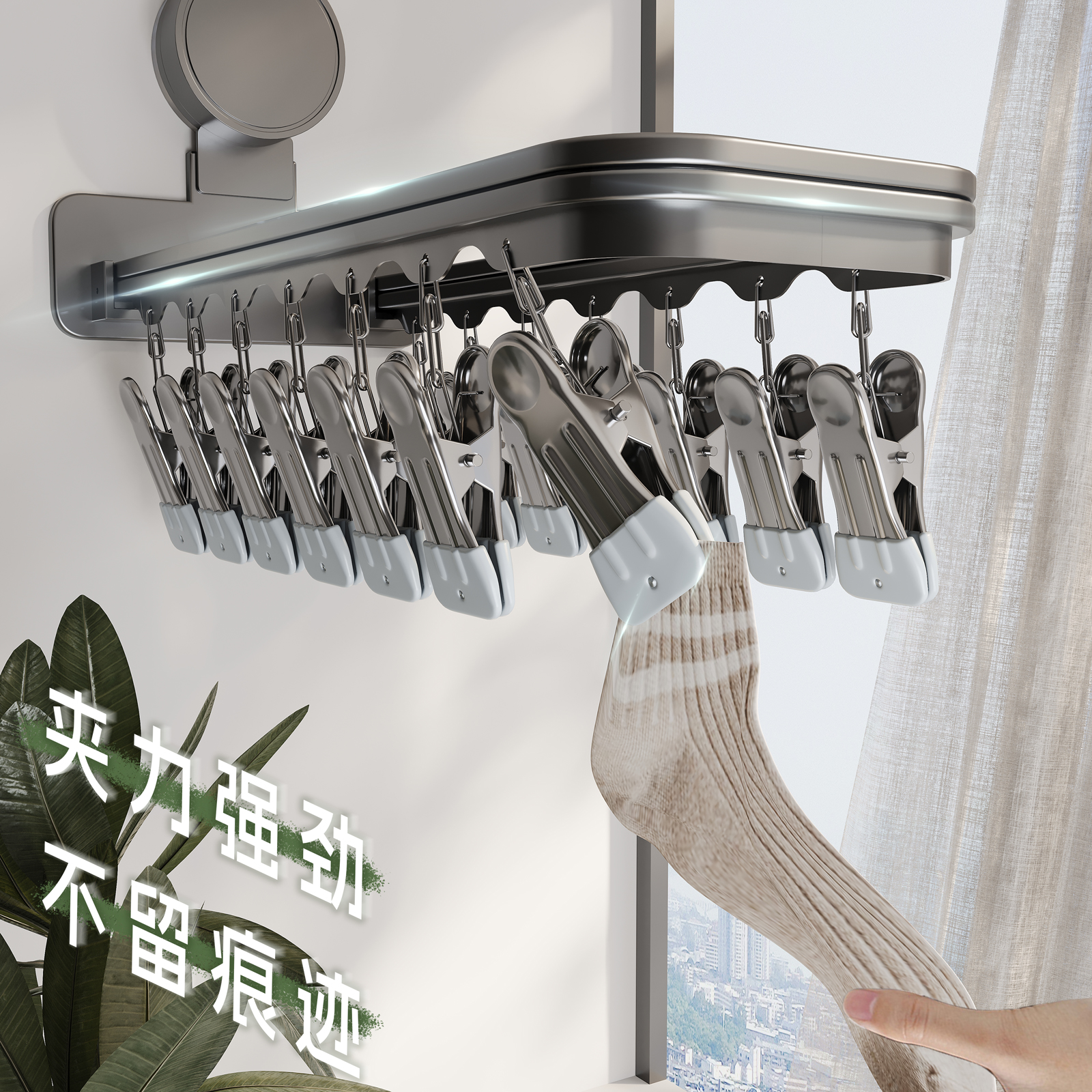吸盘晾衣架阳台多夹子晾晒架儿童挂衣服折叠晒袜子神器收纳可折叠