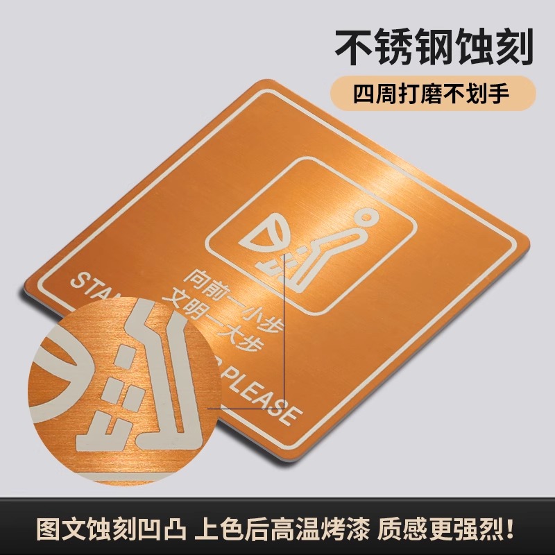 高端创意不锈钢洗手间厕所温馨提示牌卫生间便后冲水蹲坐便标识贴节约用水纸商场酒店WC小心地滑墙贴定制