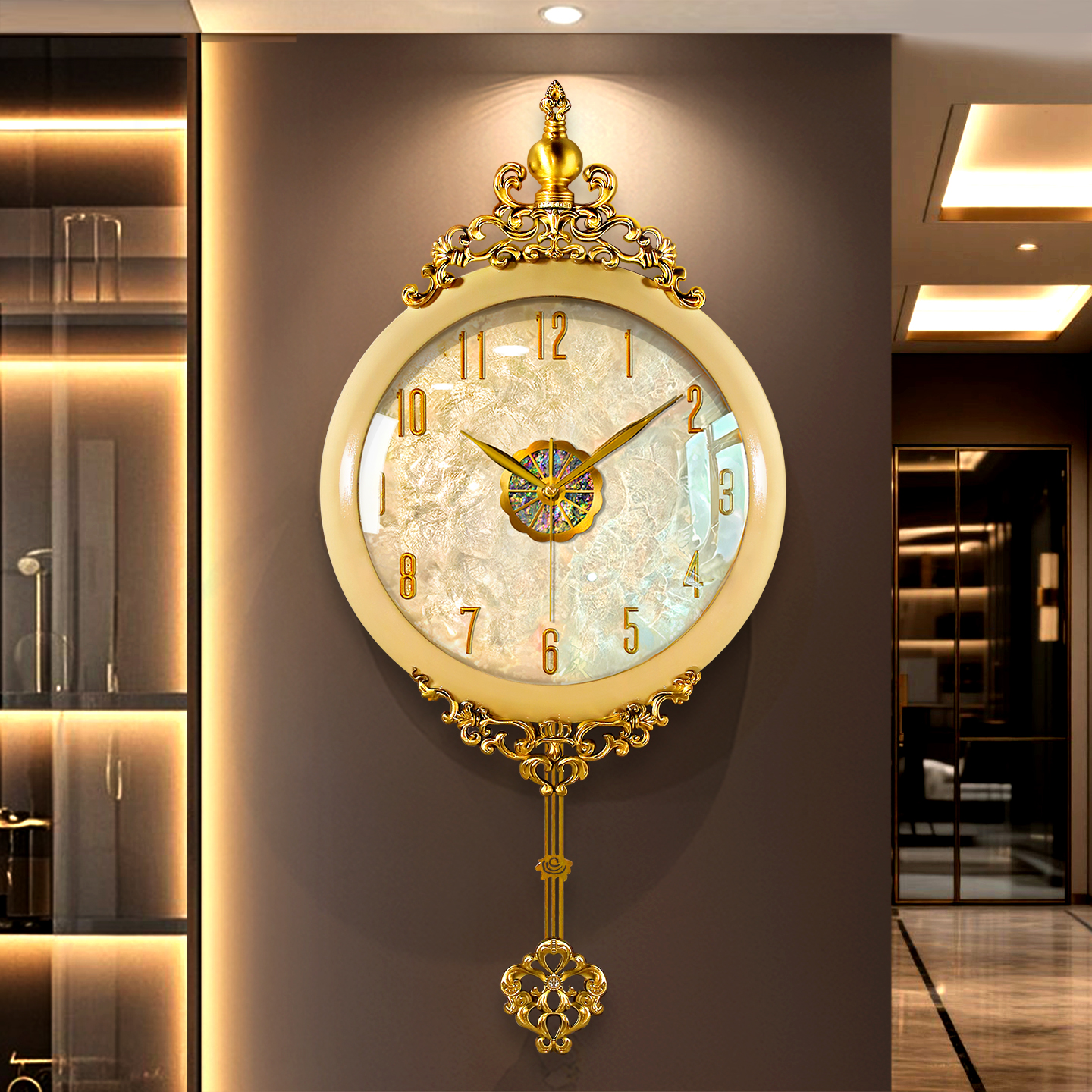 高级感艺术挂表时钟表 饰2025新款 轻奢贝壳客厅墙壁挂钟欧式 挂墙装