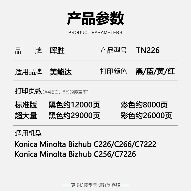 C266柯美Bizhub ADT C7222 265 225复印机墨粉 C7226震旦ADC225 晖胜适用柯尼卡美能达C226粉盒TN223碳粉C256