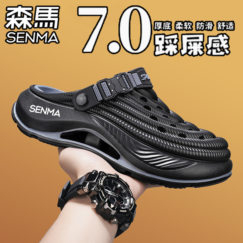 两用运动开车户外沙滩凉鞋 外穿防滑防臭包头拖鞋 男夏季 森马洞洞鞋