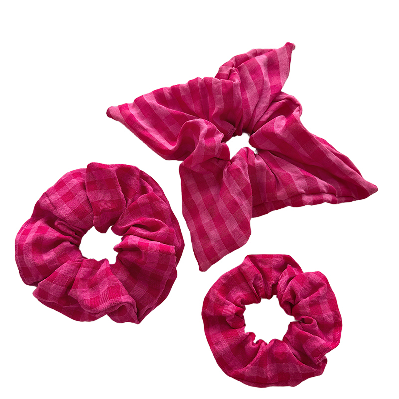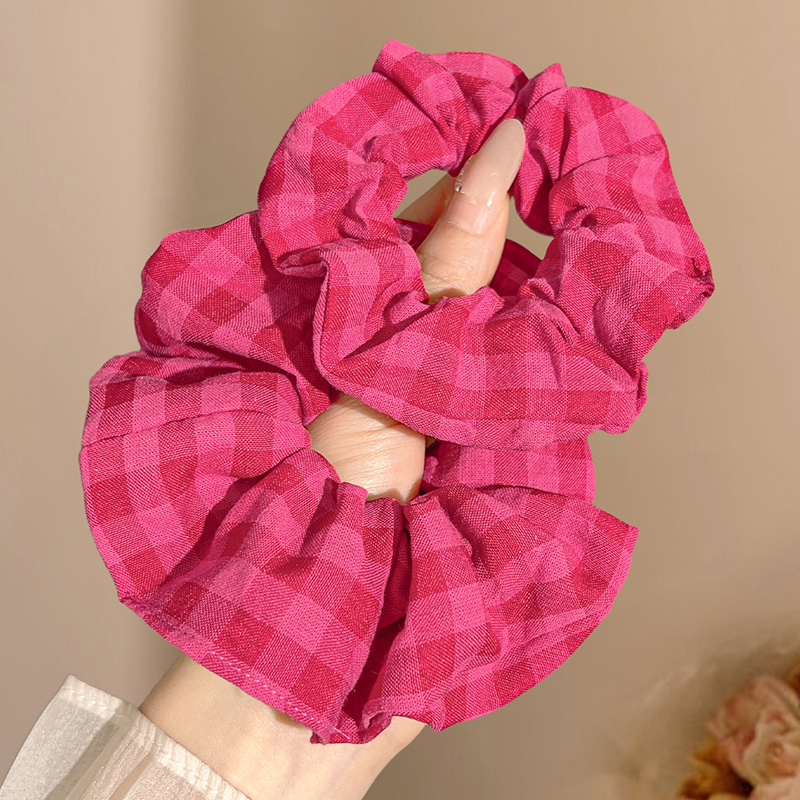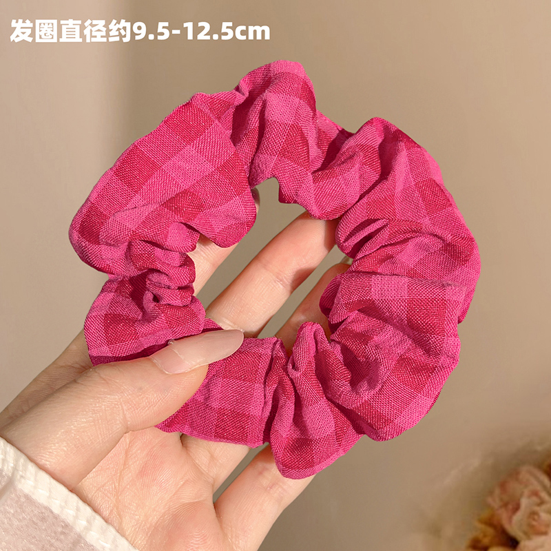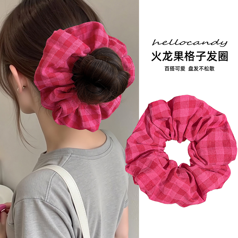韩国新款 玫红色格子大肠发圈丸子头儿童甜美马尾头饰扎头女童头绳