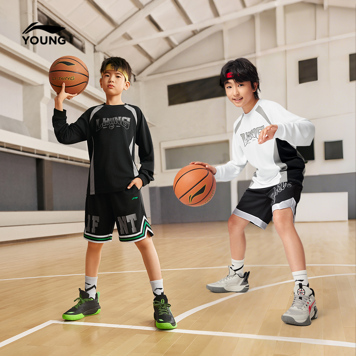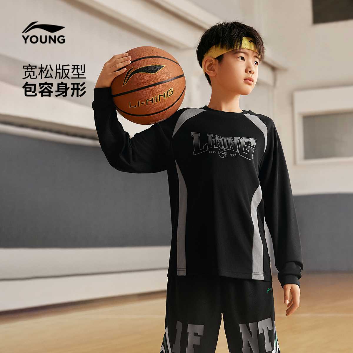 圆领针织童装 李宁童装 篮球系列秋季 T恤男女大童2025新款 长袖
