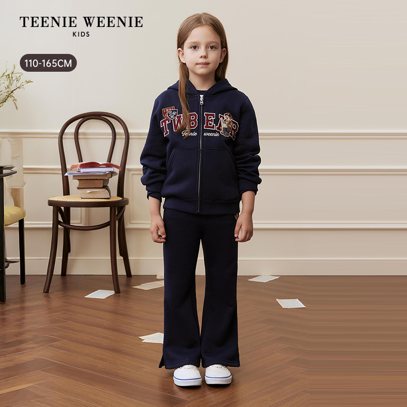 Kids小熊童装 TeenieWeenie 25秋女童刺绣加绒阔腿喇叭裤 预售