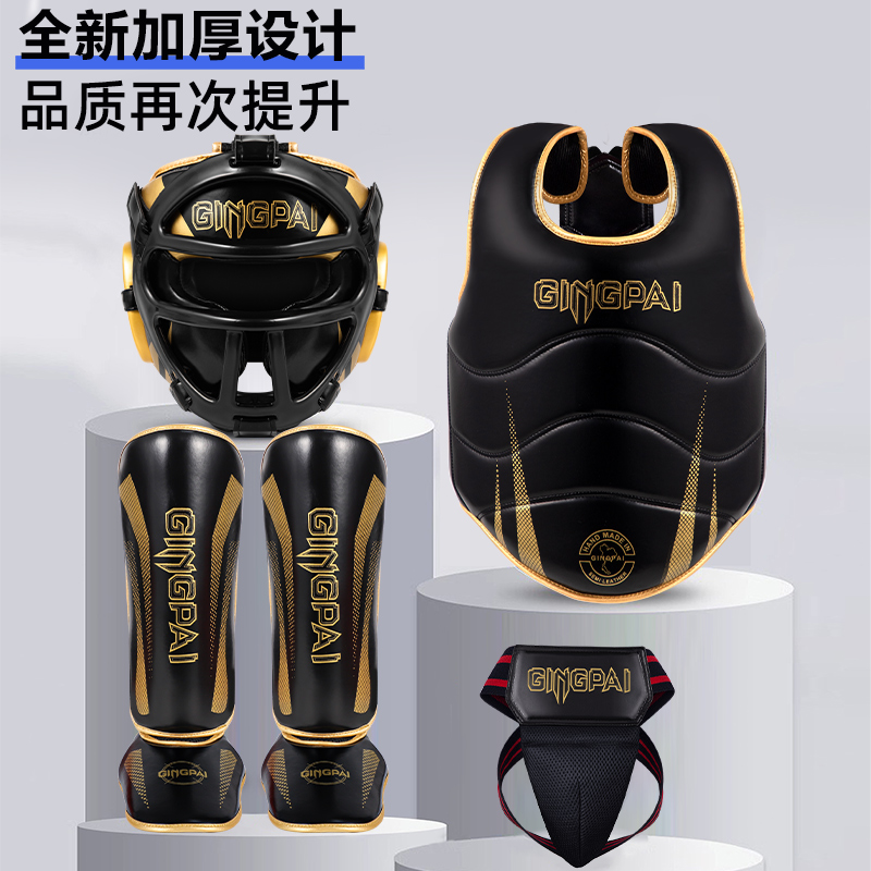 搏击护具全套儿童男泰拳散打拳击训练护头盔腿胸裆女成人专业加厚
