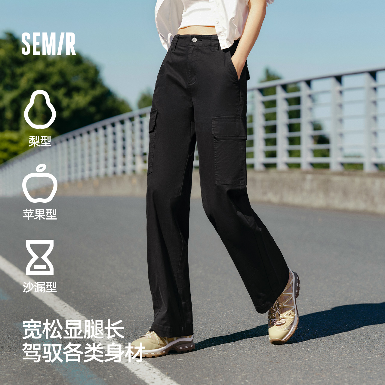 百搭ins潮秋显瘦阔腿裤 裤 女生简约潮酷 女高街盐系工装 森马休闲裤