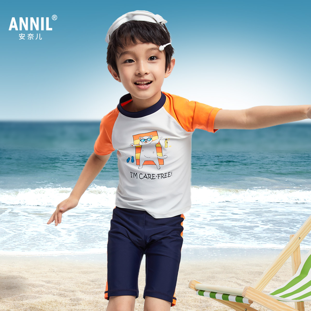 弹力疏水印花泳池训练 2025夏新款 a安奈儿童装 男童分体泳衣套装