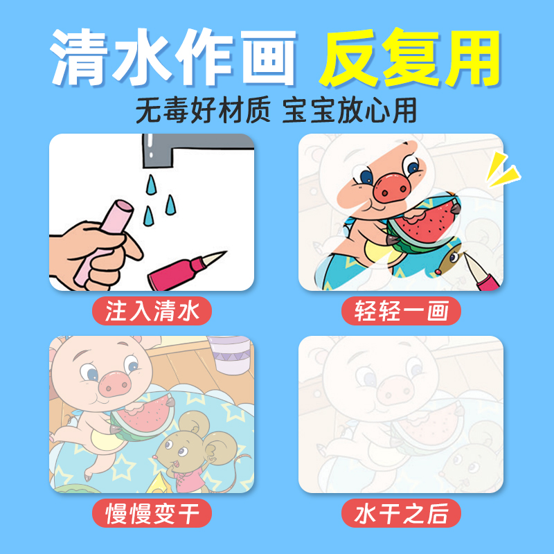 神奇水画本清水涂色绘画反复涂鸦书宝宝益智描绘本男孩幼儿园玩具