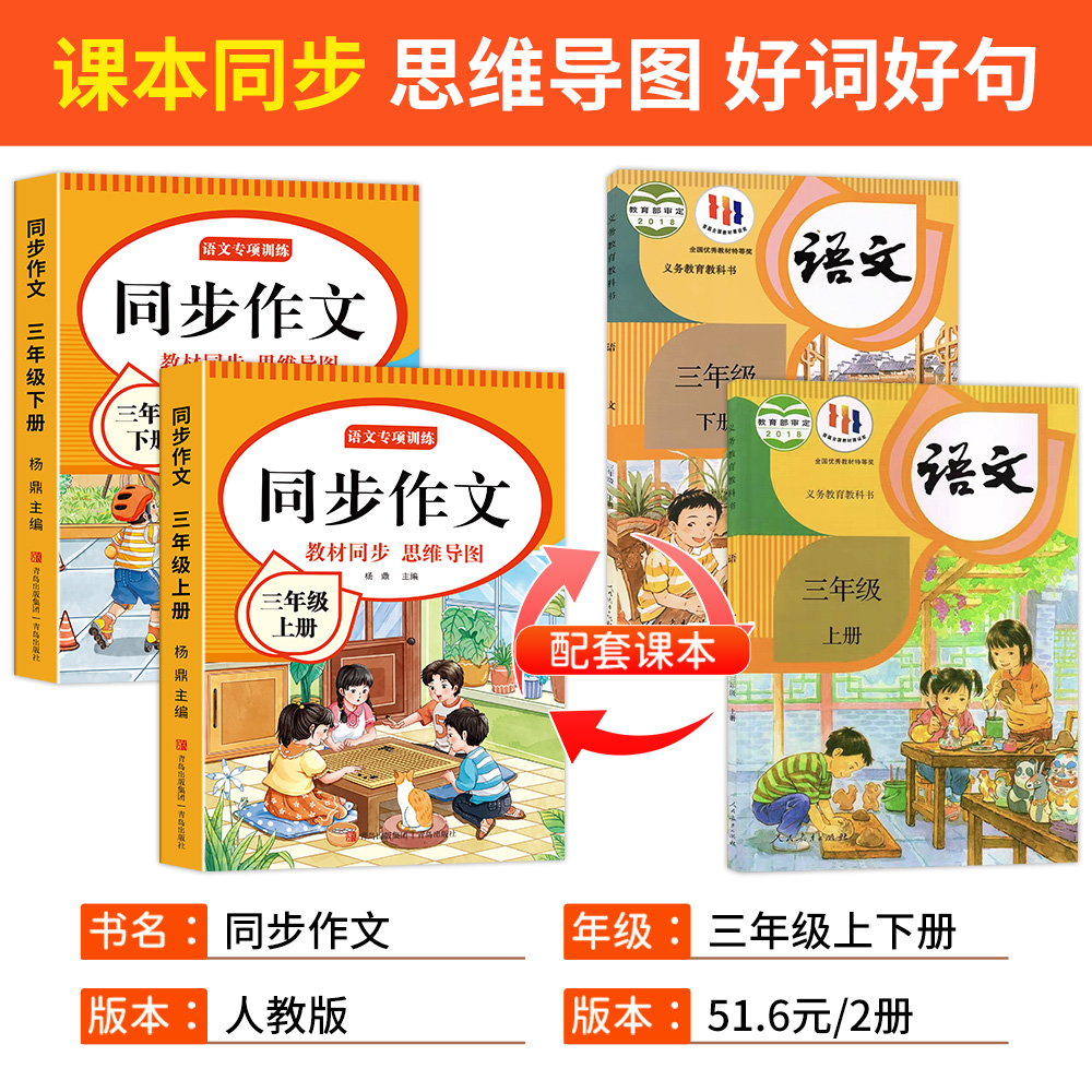 2025三年级同步作文上册人教版 上下册小学语文阅读理解强化训练同步练字帖课外书作文书大全小学生优秀作文课本范文课堂内容练习