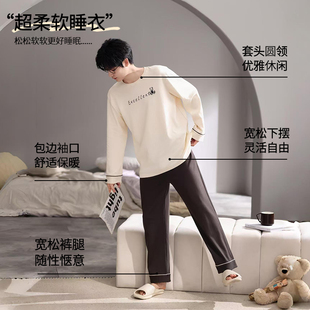 纯棉长袖 秋季 家居服男款 四季 悦内睡衣男士 通用高级感黑套装 春秋款