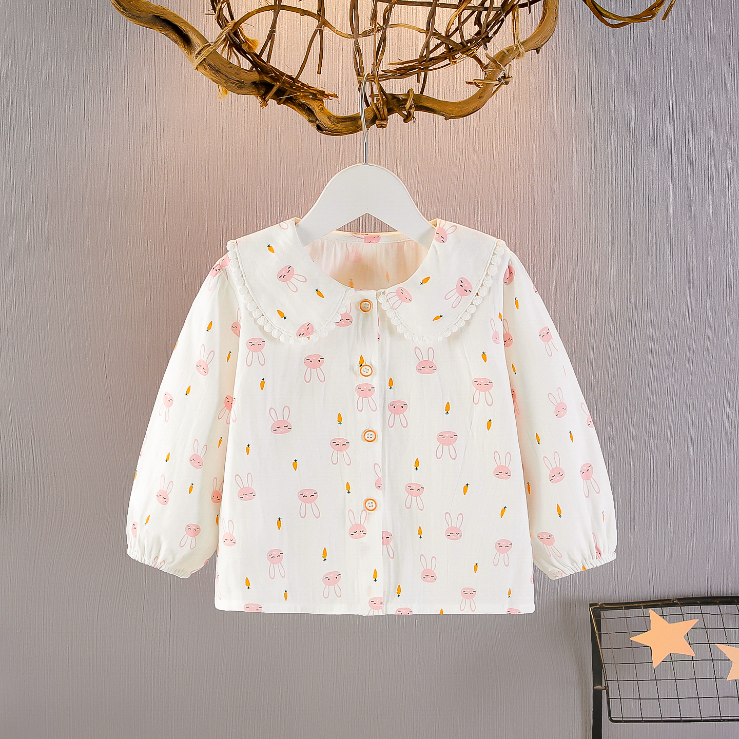 5岁女童衬衫 长袖 春秋装 卡通可爱婴儿衣服2 纯棉宝宝衬衣开衫
